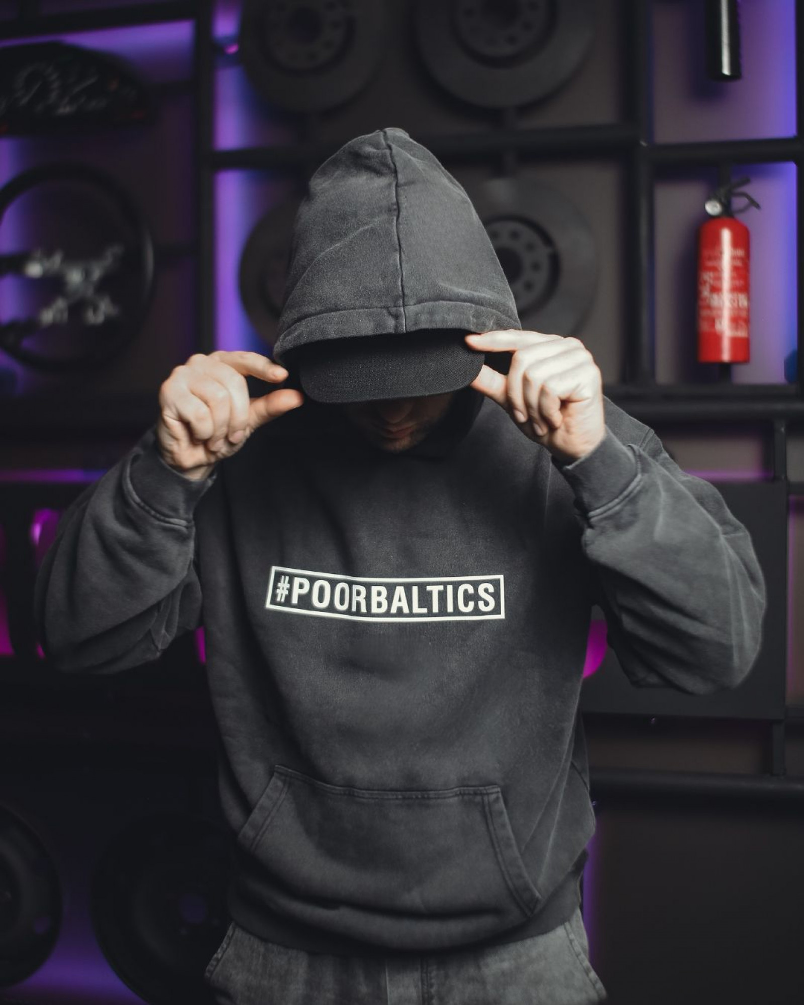 Vintage-inspired black oversized acid wash hoodie crafted from heavyweight cotton for a bold, laid-back look.